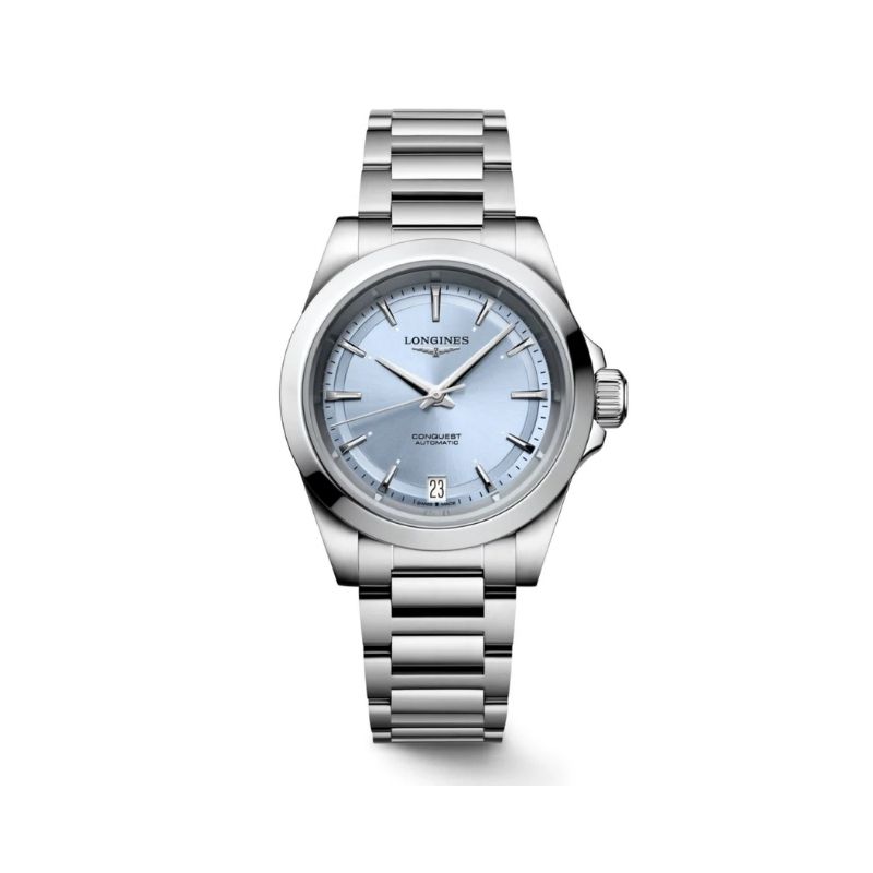 Longines Conquest 34mm: Light Blue dial, stainless steel case, automatic movement, 100m water resistant, with stainless steel bracelet L34304926