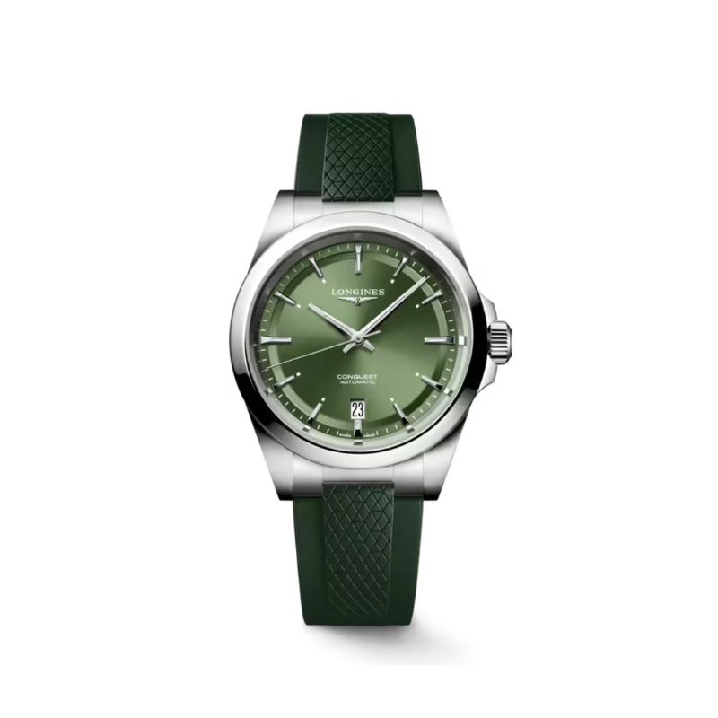 Longines Conquest Watch, 38 mm, L37204029: Green dial, stainless steel case, automatic movement 100m water resistant, with green rubber strap