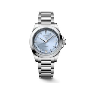Longines Conquest wrist watch with a silver dial with date display on a brown leather strap. Quartz movement and 30m Water resistant L37594765