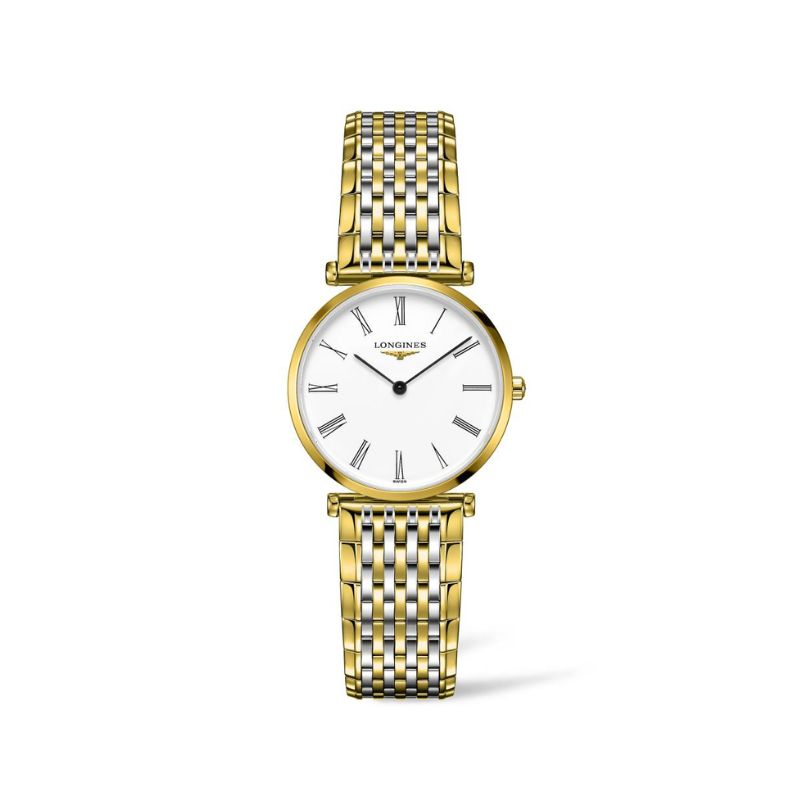 Longines La Grande Classique: White dial, gold plated case, quartz movement, 30m water resistant with gold plated bracelet L45122117