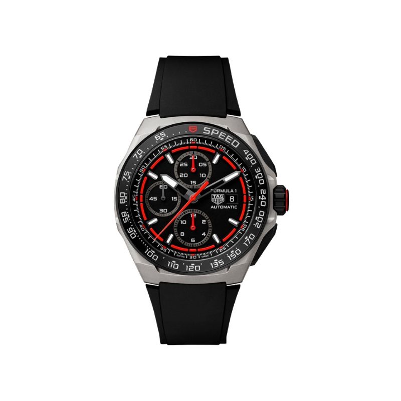 Tag Heuer Formula One Auto Chrono: Black dial, titanium case, automatic movement, 200m water resistant with rubber black strap CBZ2082FT8096